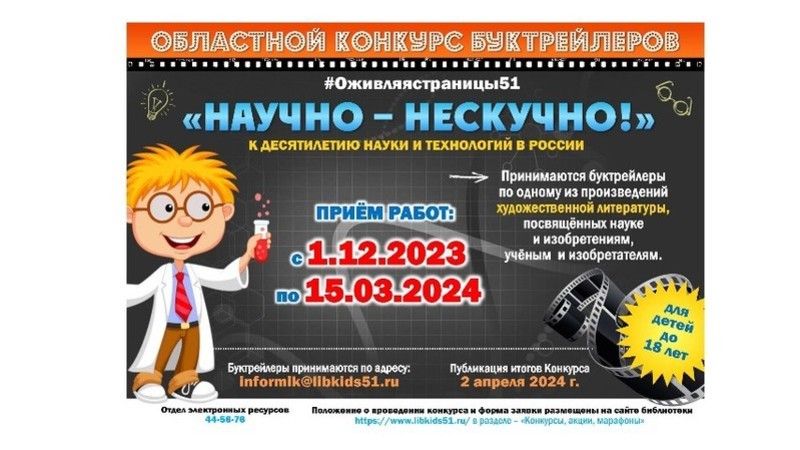 Заявки на участие в конкурсе принимаются с 1 декабря 2023 года по 15 марта 2024 года на электронную почту: informik@libkids51.ru