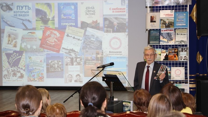 Книги Владимира Васильевича Сорокажердьева всегда интересны и пользуются спросом у читателей. Сегодня их познакомили с несколькими изданиями автора: «Териберка» – история поселка с момента основания и до наших дней, биографический справочник «Краеведческий мир Мурмана» и сборник стихов «Две воды на коромысле». Вспомнили на мероприятии и Дмитрия Коржова – писателя, поэта, литературного критика и большого друга нашей библиотеки. Были представлены его книга «Родные голоса», а также сборники стихов «И прозвучало твердое: «Вперед!» и «Сотворенный из моря и скал… Мурманск в русской поэзии», где он являлся составителем.