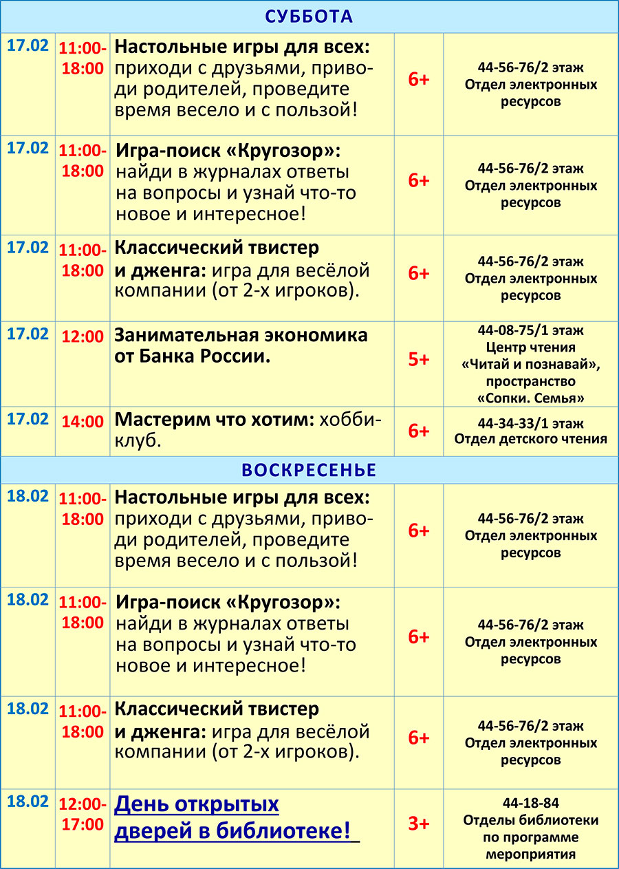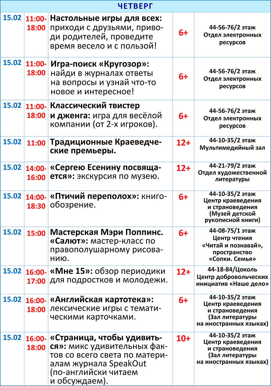 Обращаем внимание! В программе возможны изменения! Уточняйте, пожалуйста, информацию по указанным в афише телефонам.