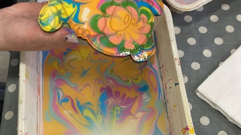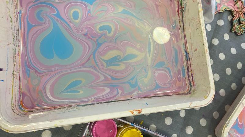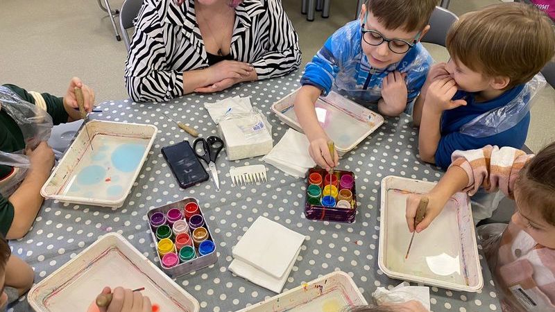 Рисовать на воде оказалось совсем несложно, как могло показаться на первый взгляд. Смело взяв принадлежности, ребята приступили к работе. Мальчишки и девчонки завороженно наблюдали, как краска расплывается на водной глади и с большим удовольствием формировали неповторимые узоры. Каждый создал свой уникальный шедевр.