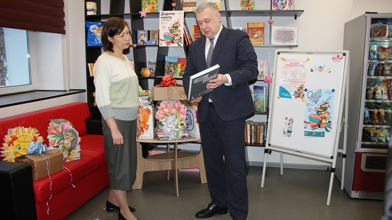Также Юрий Михайлович передал в дар библиотеке книгу «История отделения Мурманск», изданную к 100-летию Отделения по Мурманской области Северо-Западного главного управления Центрального банка Российской Федерации (составитель Михаил Старичков).