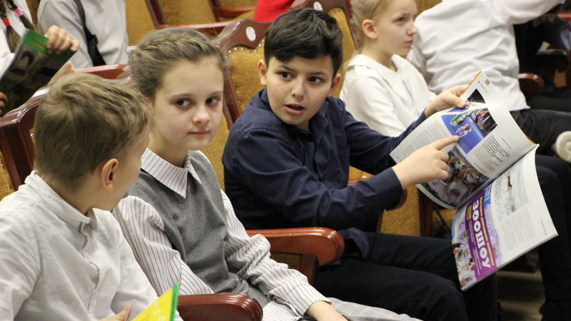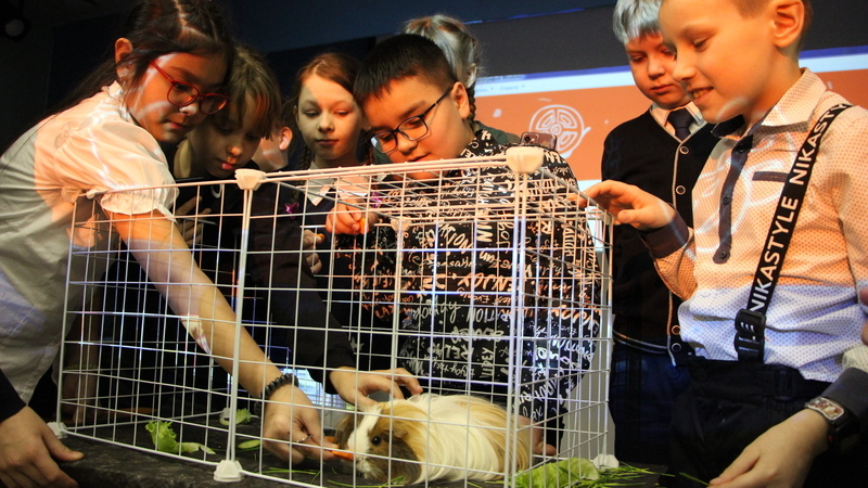 А в мультимедийном зале библиотеки ученики 3 «Б» и 3 «В» школы № 43 посмотрели фильмы «Хозяин для котенка», «Хочу собаку», «Подарки не отдарки» и познакомились с морской свинкой Бусей, которая покорила сердца юных зрителей. Третьеклассники проявили огромный интерес к журналам о животных, представленных на выставке.