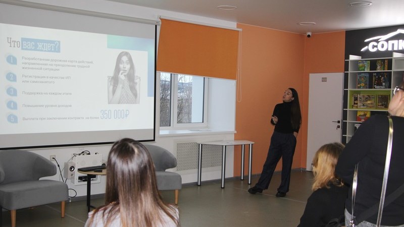 Специалист Центра социальной поддержки населения Кохан Евгения Александровна рассказала, что такое социальный контракт, о возможностях адресной государственной помощи на его основании. Данный вид помощи могут получить малоимущие семьи и одиноко проживающие люди на период поиска работы или на осуществлении предпринимательской деятельности.