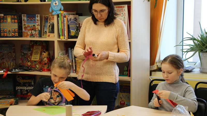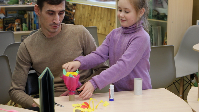 А потом все вместе из цветной бумаги и клея «вырастили» цветочек для МАМЫ.