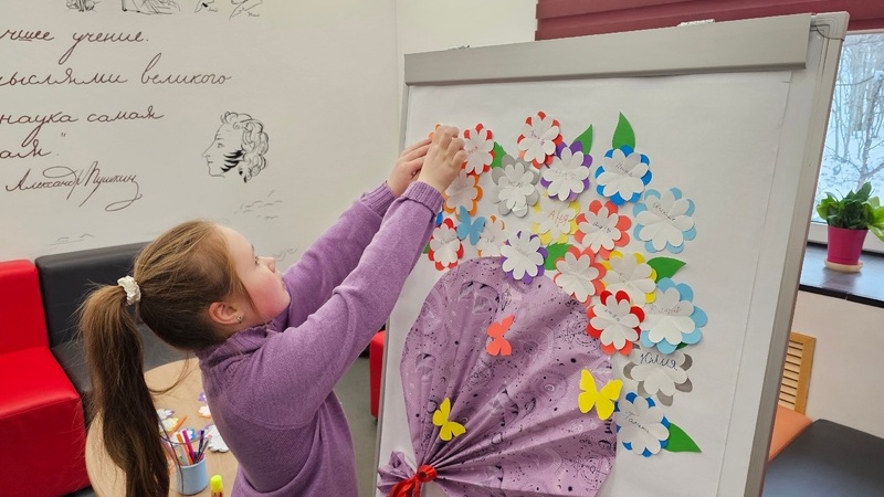 Сегодня волонтеры Центра добровольческих инициатив «Наше дело» собирали «Букет из маминых имен» – в библиотеке прошла весенняя акция, посвященная Международному женскому дню
