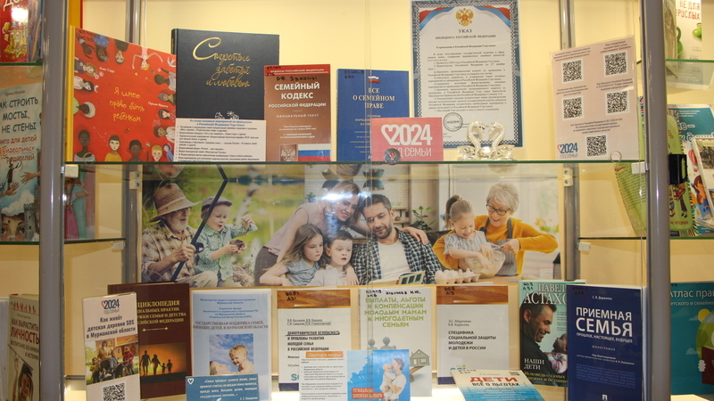 Наполнение экспозиции достаточно разнообразно и многопланово, максимально отражает данную тему. Книги и нормативно-правовые документы ее центрального раздела отвечают на вопрос: что делает государство для улучшения положения семьи. Здесь же размещены издания, касающиеся проблем демографической безопасности современной России; мер государственной поддержки семей, имеющих детей в Мурманской области; настоящего и будущего молодой семьи; материнского капитала; вопросов, касающихся многодетных семей и устройства детей-сирот. О том, как складывается жизнь в семье, где живут сразу несколько приемных детей, о воспитании ребенка с особенностями развития рассказывают книги, являющиеся реальными историями жизни.