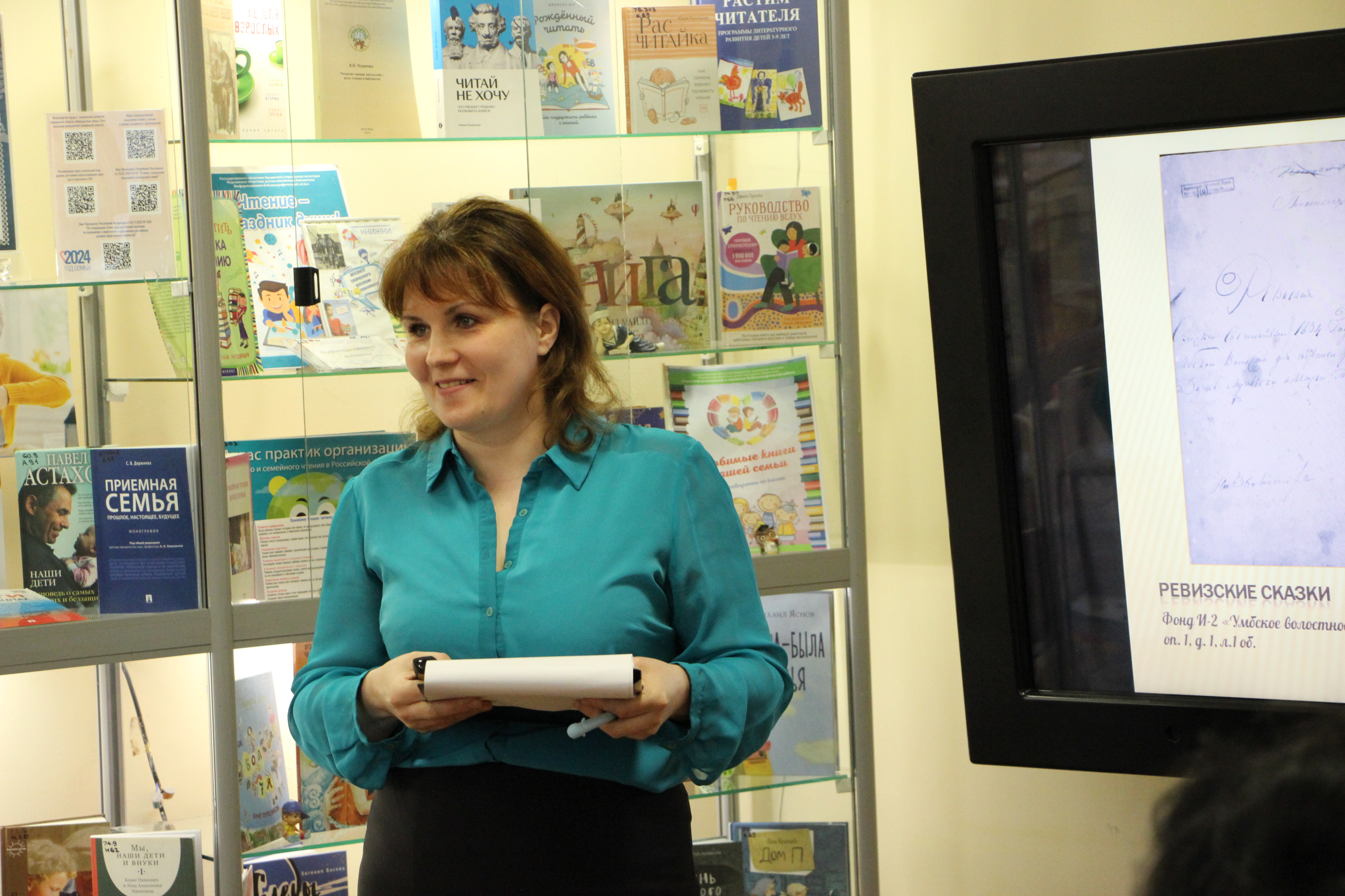 Главный библиограф отдела информационно-библиографической работы и педагогического общения Светлана Ивановна Бузук познакомила присутствующих с разделами экспозиции и их наполнением.