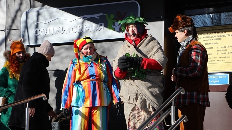 В гости к читателям библиотеки пришли Скоморох, Медведь, Кикимора болотная, Зимушка-зима, Весна красна. Они с удовольствием делились с присутствующими весенним настроением. Ребята приняли участие в различных забавах и конкурсах, озорно и весело играли в подвижные масленичные игры на ловкость и силу, по очереди перетягивали канат, на скорость передавали блины-великаны, пели песни и водили хоровод. Попрощались с зимой традиционным сжиганием чучела Масленицы. В завершение уличного гуляния всех участников праздника ждало долгожданное угощение: ароматные блины с горячим чаем.