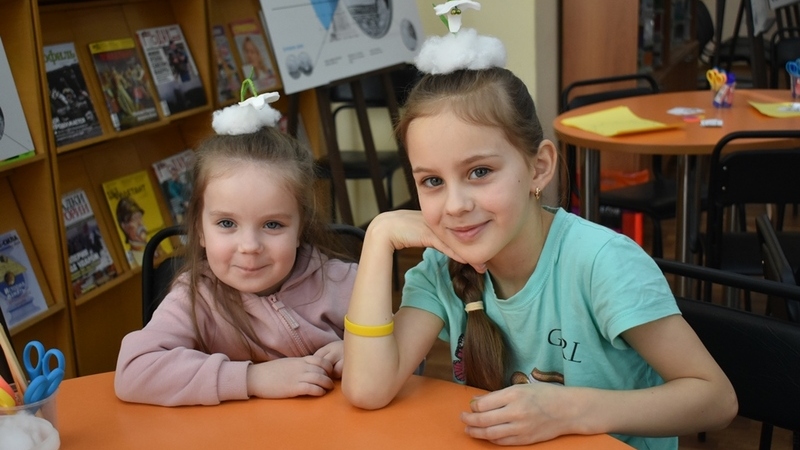 В отделе детского чтения юные мастера сделали игрушку-антистресс из цветного фоамирана и синтепона. Оживили солнце, приклеив ему глазки, носик и улыбку, украсили поделку разноцветными бабочками. В отделе электронных ресурсов дети и родители смастерили солнышко-CD из дисков и цветной бумаги. А в отделе художественной литературы создали солнце-магнит, сшитый из фетра, набитый синтепоном и декорированный бусинками. Каждый участник творческих занятий унес с собой личное солнышко, которое будет поднимать настроение даже в пасмурный день, а также нежный подснежник – первый вестник весны, и доброго песика Трезора.
