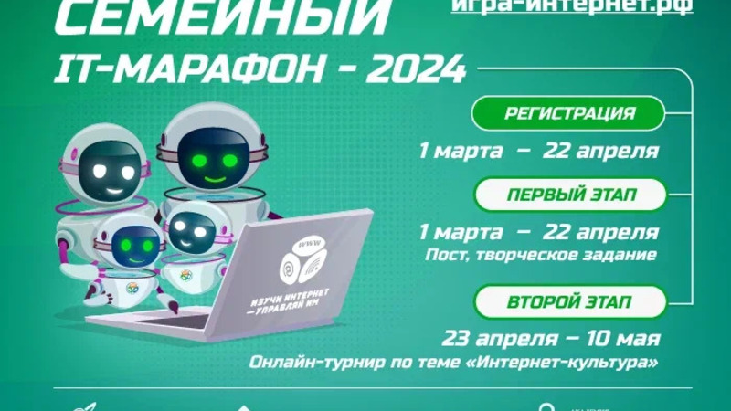 Координационный центр доменов .RU/.РФ приглашает детей и родителей принять участие в 8-м Всероссийском семейном IT-марафоне. Соревнования пройдут на сайте интерактивного образовательного проекта «Изучи интернет – управляй им»* до 15 мая, регистрация семейных команд открыта до 22 апреля.