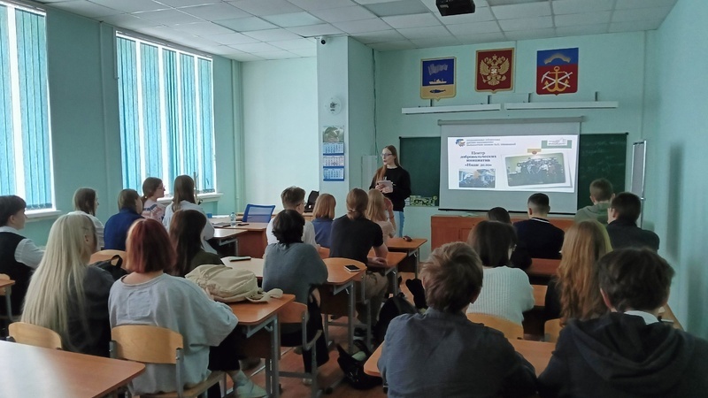Сотрудник центра рассказала ребятам о различных видах волонтерства, в том числе и о семейном, которое набирает большую популярность в Год семьи в России.