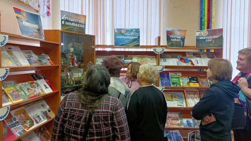 Началось очередное заседание в центре краеведения и страноведения, там любители литературы познакомились с выставкой «Путешествие в Закавказье», а также с наиболее интересными фактами из истории, культуры Азербайджана, Армении, Грузии. Виртуальная экскурсия началась с российского Северного Кавказа, тем более, что в этом году Республике Ингушетия исполняется 100 лет. Особый интерес гости проявили к литературе закавказских стран, как к популярной художественной, так и к изданиям с рецептами, природными красотами и архитектурными шедеврами.
