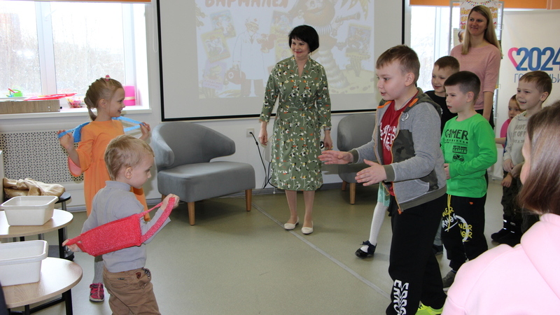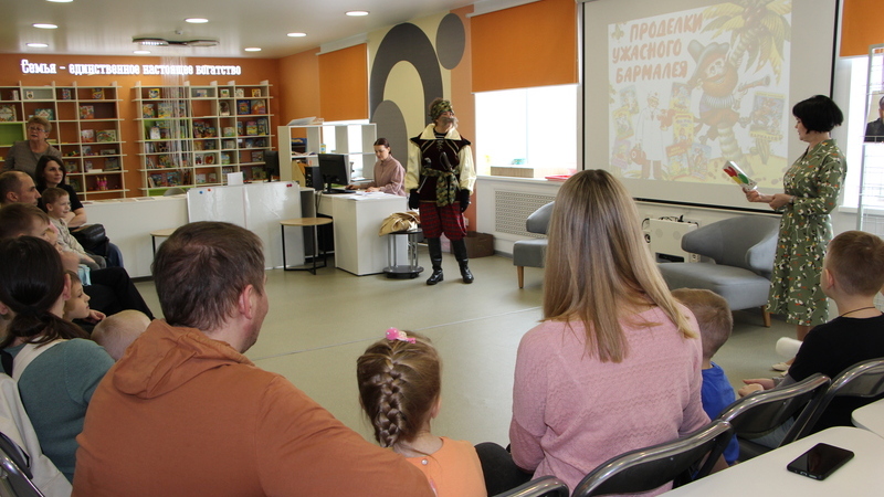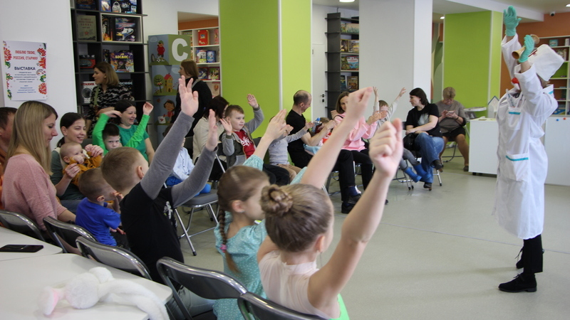 Не остались в стороне и родители. Для них библиотекари подготовили задание-экспромт: показать загадку-пантомиму по стихотворным строчкам сказки «Тараканище». Надо отметить, с задание мамы справились на отлично!