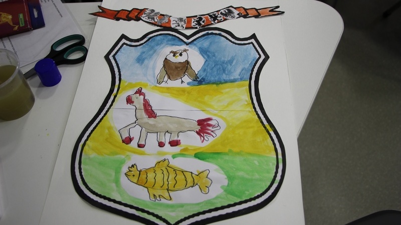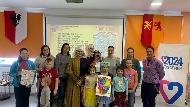 Его провели специалисты из мастерской исторического костюма "Светлица". Собравшиеся познакомились со сводом правил средневековой геральдики, узнали, что семейный герб – это щит, на котором изображены определенные фигуры и символы, характеризующие семью, говорящие о ее достижениях и победах. Вооружившись знаниями, ребята и взрослые приступили к работе над своими фамильными гербами.