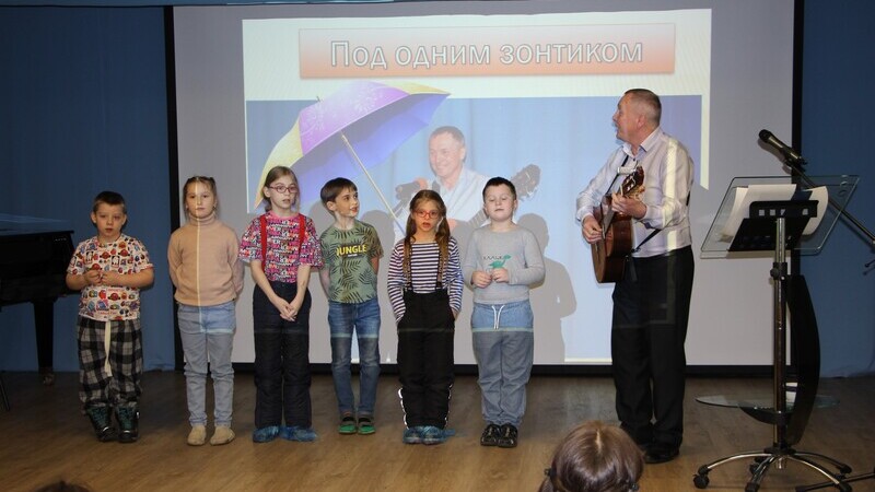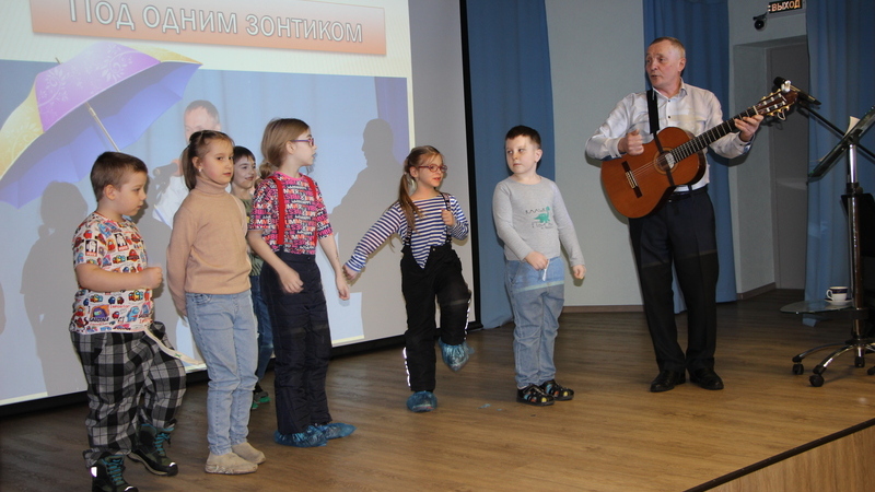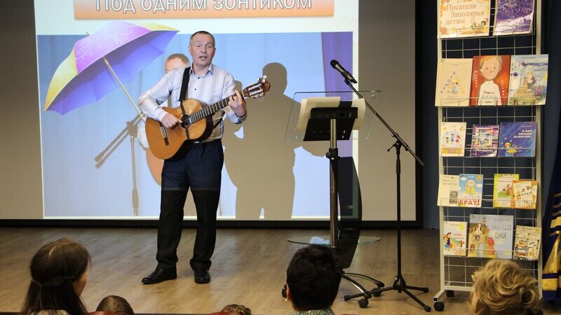 Мурманский музыкант, бард, поэт Александр Базанов исполнил для аудитории песни на стихи заполярных поэтов и популярные композиции из мультфильмов.