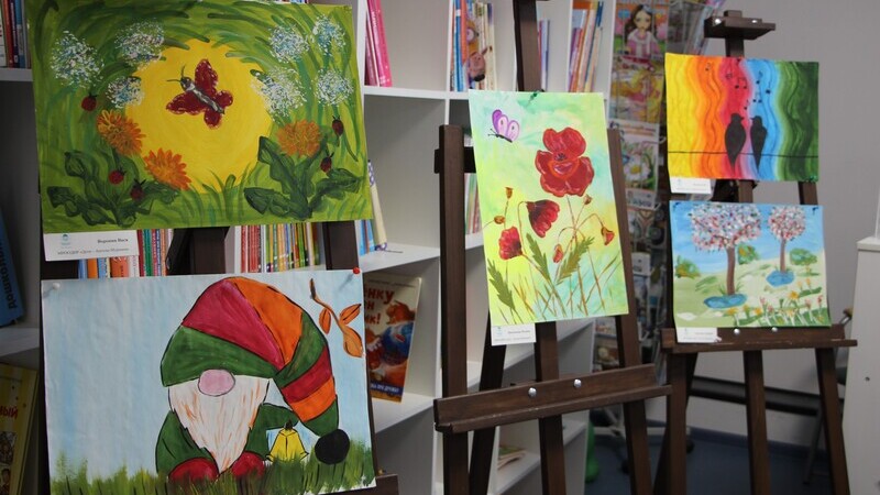 На втором этаже библиотеки состоялось открытие выставки детских рисунков «Весеннее настроение». Представлено более 25 работ юных художников с расстройством аутистического спектра из Мурманской региональной общественной организации детей-инвалидов и их родителей «Дети-Ангелы Мурмана».