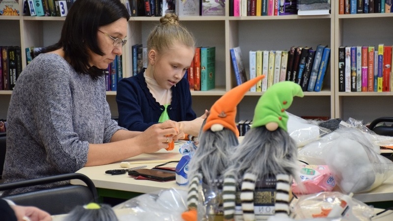 На занятии участники сделали мягкую игрушку в виде гномика. Одним из материалов, который использовали в рукоделии стал мех, он считается достаточно сложным материалом для работы. Но, несмотря на это, участники, прислушиваясь к советам библиотекарей, под чутким руководством Светланы Владимировны и Любови Николаевны, справились со всеми трудностями. Мех послужил гному шубкой, еще сделали ему ботиночки, которые украсили джутом, и колпак из яркого оранжевого флиса, декорированный деревянной пуговкой.