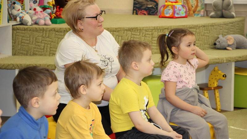 На лесной полянке маленькие читатели слушали лесные разговоры: Жука и Лютика, синичек и Дятла, спрашивали: «Рыбка, рыбка, где ты спишь?». Вместе с родителями малыши радовались, играли и считали птичек.