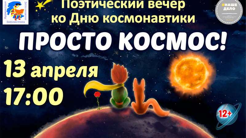 13 апреля в 17:00 в волонтерском центре библиотеки в рамках молодежного проекта «Лампа» состоится поэтический вечер, темой которого станет космос