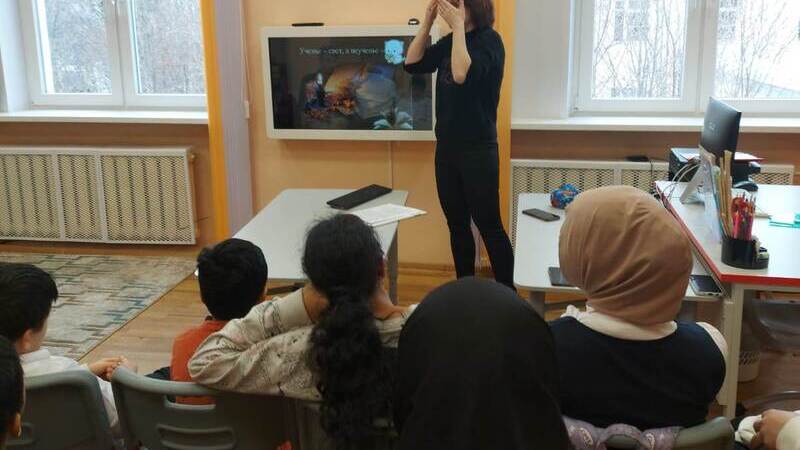 Библиотекарь центра краеведения и страноведения провела для ребят веселый урок русского языка. Участники встречи вспомнили, что такое «антонимы», приняли участие в играх «Говори наоборот», «Я начну, а ты закончи». Школьники читали русские пословицы и поговорки, разбирали их значение, а затем по очереди вставляли пропущенные слова.