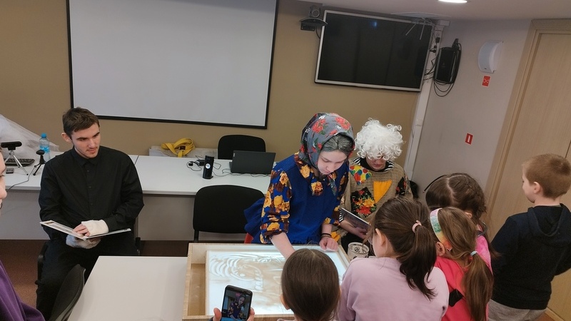 В преддверии замечательного праздника – юбилея А.С. Пушкина для ребят была подготовлена необычная интерактивная игровая программа. С помощью песочной анимации волонтер библиотеки Татьяна Васильева оживила «Сказку о рыбаке и рыбке». С удивлением и восторгом гости встречи наблюдали за волшебными превращениями песка в сказочные картины.