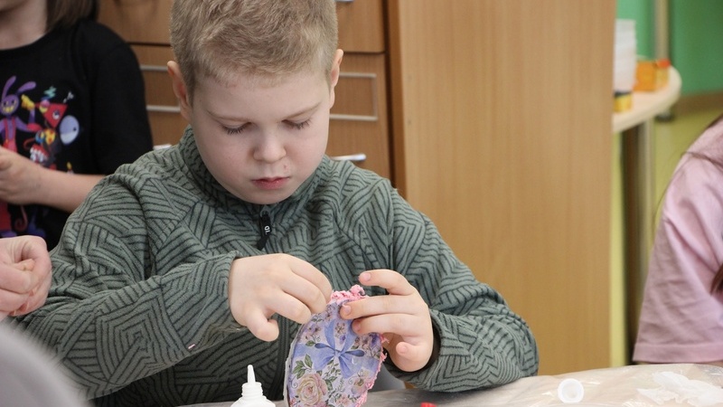 Затем юные мастера из картонных заготовок и бумажных салфеток сделали пасхальный сувенир в технике декупаж. У каждого получилась своя неповторимая пасхальная поделка, которой можно украсить свою комнату, или подарить на праздник близким.