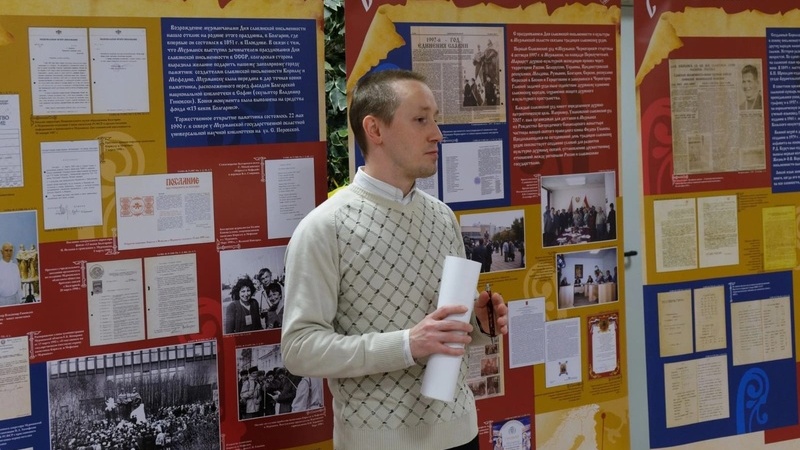 Документы выставки рассказывают о появлении и становлении в современной России Дня славянской письменности и культуры. Впервые праздник состоялся в 1986 году в Мурманске по инициативе Мурманской писательской организации и представителей мурманской общественности. В 1991 году День славянской письменности и культуры получил общегосударственный статус. Также в Мурманской области в рамках Дня славянской письменности и культуры с 1989 года отмечается День саамского слова.