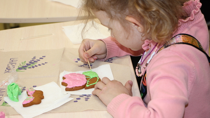 В течение дня прошли многочисленные мастер-классы, организованные партнерами библиотеки: глиняное дело, декоративная роспись пряников, изготовление кукол для театрализации, игра на укулеле, песочная живопись.