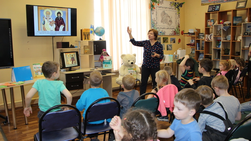 На занятии ребята узнали, что язык, на котором мы говорим и пишем сегодня, зародился более тысячи лет назад. Услышали о создателях старославянской азбуки – братьях-просветителях Кирилле и Мефодии, благодаря которым славянские народы стали грамотными, научились читать и писать. Дошкольникам показали изображения древних рукописей и первых книг, рассказали об истории появления памятника первоучителям в Мурманске.