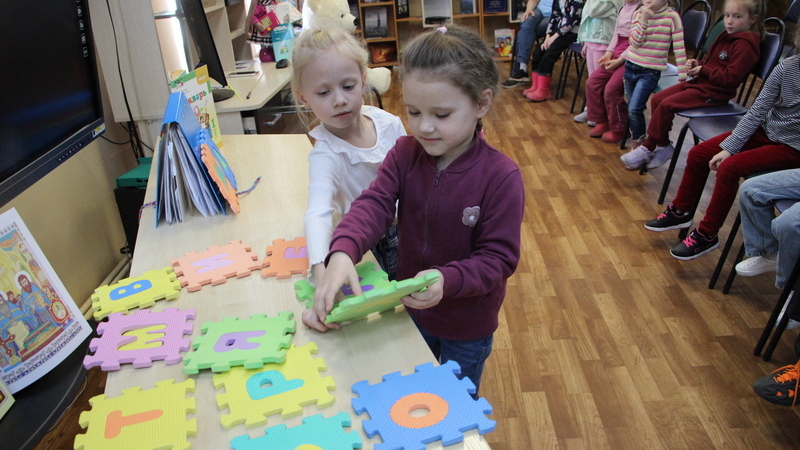 Дети с большим удовольствием вспоминали пословицы и отгадывали загадки о буквах, книгах и сказочных героях, составляли сами короткие слова и даже разгадывали ребусы.