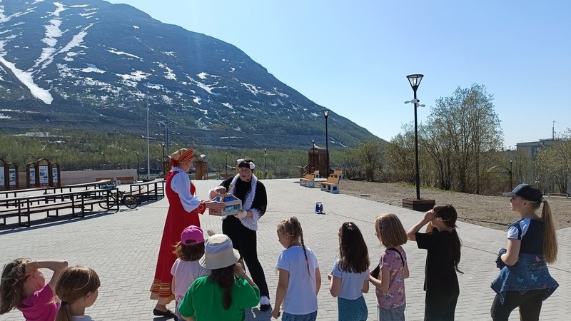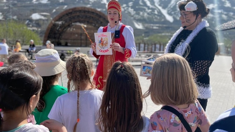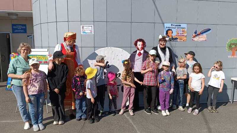 Вместе с Котом ученым мальчишки и девчонки, посещающие летние оздоровительные лагеря отправились в увлекательное путешествие по Лукоморью. Ребятам предстояло выручить сказки, которые заколдовала и спрятала в ларец злая царица. Для спасения любимых произведений ребятам пришлось показать чудеса ловкости, вспомнить сказки юбиляра, стихотворные строки, успокоить разбушевавшееся море и отгадать загадки. А еще все вместе задорно танцевали и рисовали мелками на асфальте.