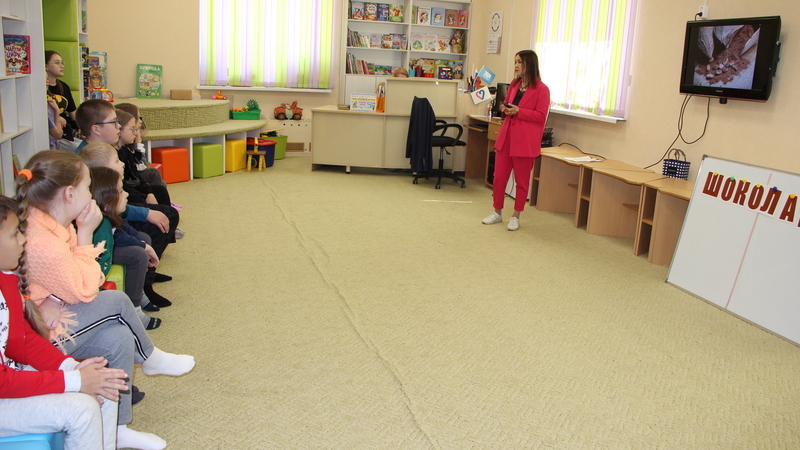 Большое удивление вызвали у ребят скульптуры из сласти, попавшие в Книгу рекордов Гиннесса. Ребята узнали, чем полезен шоколад, отвечали на вопросы викторины и поиграли в игры: «Составь слова», «Марс или Сникерс?». Особенно ребятам понравилась игра, где из букв слова «шоколад» нужно было составить другие.