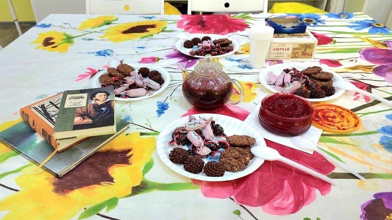 За кружкой брусничного чая участники встречи поговорили о вкусовых предпочтениях знаменитых поэтов и писателей, о любимой Александром Сергеевичем печеной картошке, которой матушка поэта заманивала его обратно домой, вспомнили брусничную воду, которая упоминается в «Евгений Онегине», и неожиданно припомнили жаренных в сметане карасей, обожаемых Антоном Чеховым.
