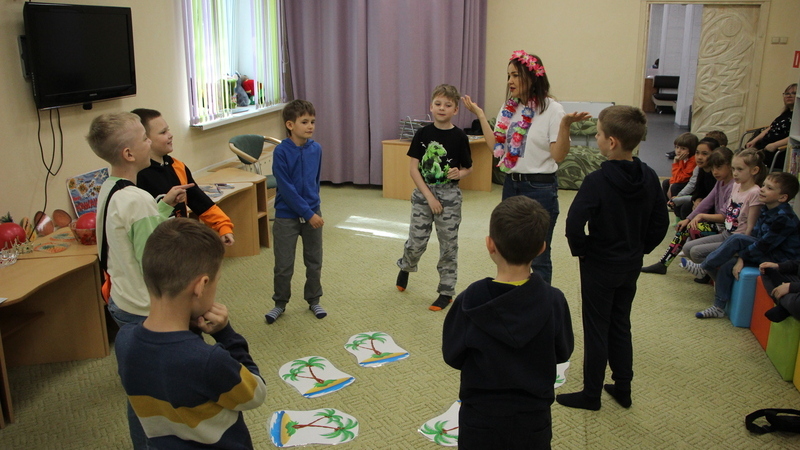 Прибыв на воображаемый остров, юные путешественники выбрали короля и королеву, участвуя в подвижной игре «Гавайский король». В эстафетах «Собери ананасы» и «Музыкальный кокос» дети проявили ловкость и находчивость. Затем ребята отправились на солнечный пляж, где их ждала рыбная ловля и соревнование по сбору крабов. Особенно мальчишкам и девчонкам понравилась традиционная гавайская игра «Лимбо», которую они просили повторить несколько раз.