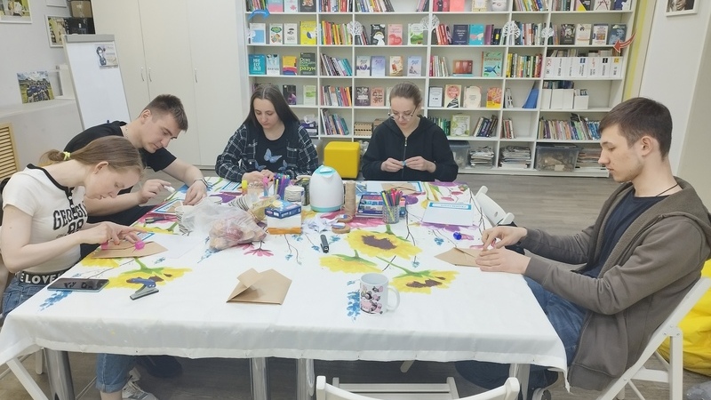 На занятии участники освоили искусство оригами и научились делать конверты, а также мастерить голубей. В результате каждый доброволец получил красивый конверт, украшенный сердечком в цветах российского флага, которое держат в лапках две белые птицы.