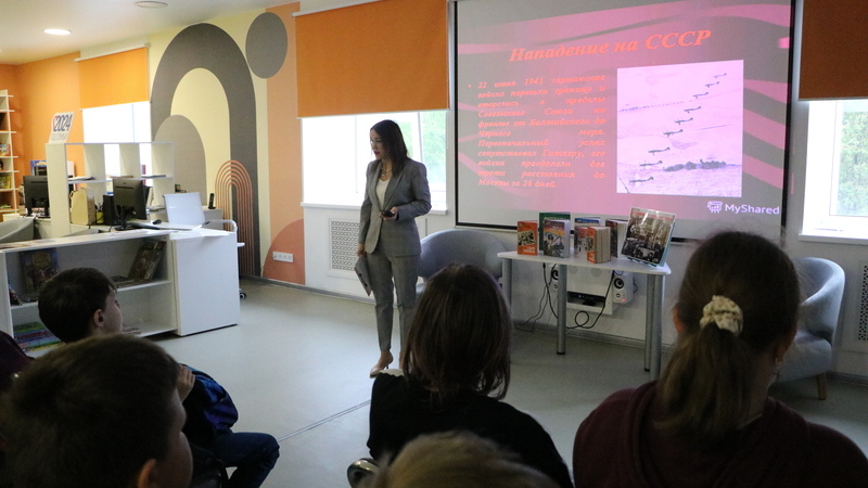 Отдел электронных ресурсов подготовил для мурманчан информ-досье «За маршем – марш, за боем – новый бой!». Ребята узнали малоизвестные факты о Великой Отечественной войне, посмотрели современные видеоролики и видеохроники тех печальных лет. Ответили на вопросы по истории, проверили, как хорошо они знакомы с техникой, стоящей на вооружении страны той поры, и вспомнили героев минувших дней.