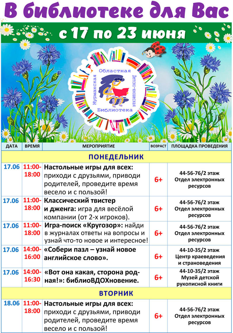 Мурманская областная детско-юношеская библиотека имени В. П. Махаевой приглашает читателей подобрать книги по интересам, посетить мастер-классы, выставки и музеи, принять участие в сборке спилс-карт РФ, а также освоить правополушарное рисование.