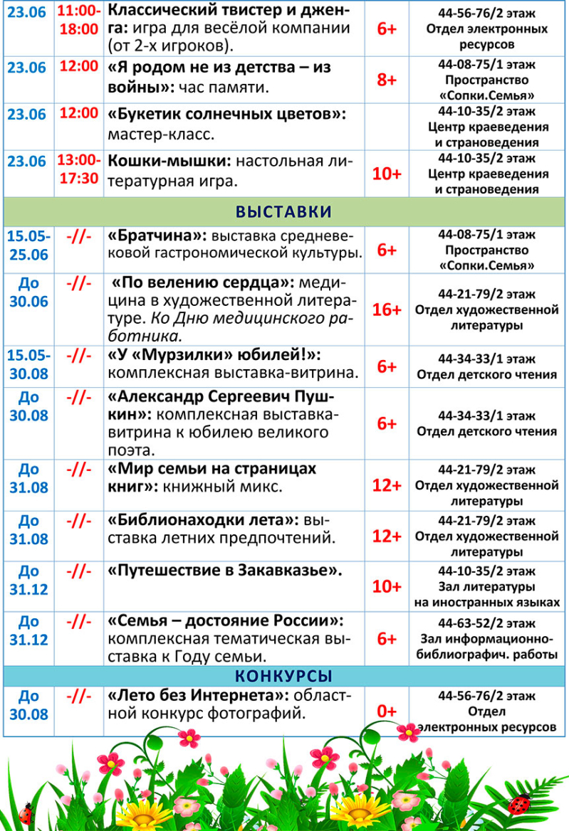 Обращаем внимание читателей, что в программе возможны изменения! Уточняйте, пожалуйста, информацию по указанным в афише телефонам.