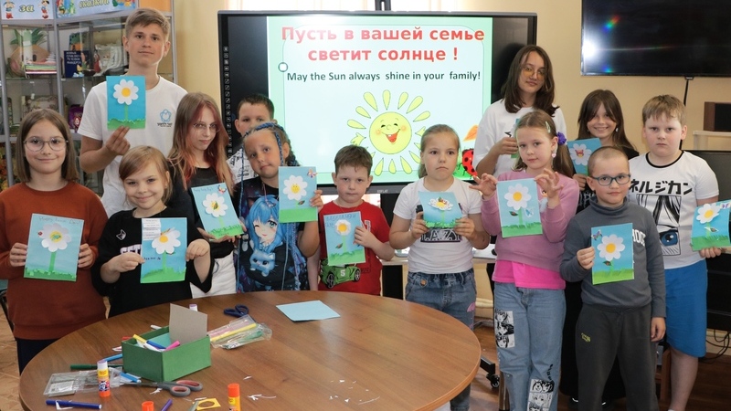 Именно этот полевой цветок ребята сделали своими руками – нежные белоснежные ромашки украсили поздравительные открытки. Получился прекрасный подарок любимой семье! Заодно совместили приятное с полезным: выучили несколько английских слов по теме и познакомились с английскими и русскими эквивалентами пословиц о семье и семейными загадками.