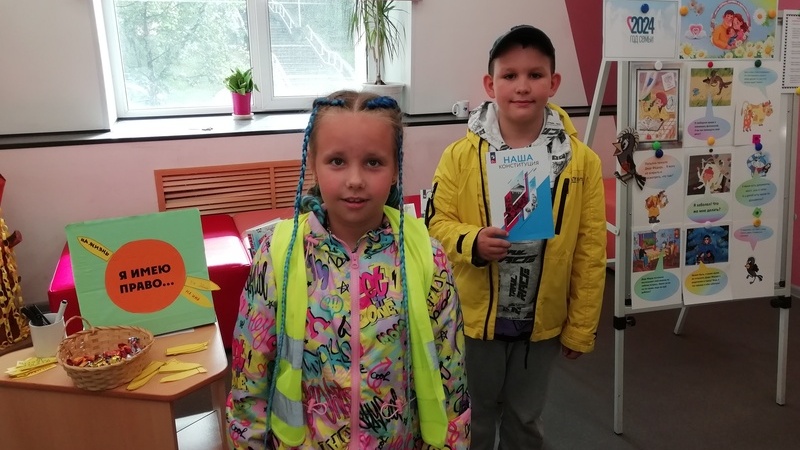 Юные мурманчане познакомились с книгами «Детям о праве» П. Астахова, «Конституция Российской Федерации для детей с поправками 2020 года» Бабенко М., «Моя Конституция» О.Н. Журавлёвой, С.В Александровой и другими. Проанализировав вместе со специалистом библиотеки поведение героев сборника Эдуарда Успенского «Всё Простоквашино», участники акции дали оценку их поступкам с юридической точки зрения. По традиции был создан арт-объект – бумажный подсолнух, на листочках которого дети написали свои права и привилегии, которые гарантирует им государство: бесплатные обучение и охрана здоровья, право на информацию и досуг, право жить и воспитываться в семье, право выражать своё мнение и другие. Пазлы, содержание которых было связано с темой мероприятия, собрать было непросто, но участники акции справились с этим заданием на отлично.
