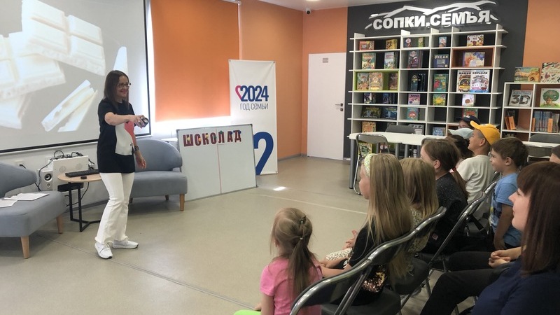 Ребята погрузились в удивительный мир шоколада и узнали интересные факты о нем: его родину, создателя, историю путешествия этого сладкого лакомства по всему миру. Участникам мероприятия было очень интересно узнать, что означает слово «шоколад», кто из европейцев первым попробовал его, когда и где был изготовлен первый фабричный шоколад и кто привёз его в Россию, а также, где установлен единственный в мире памятник шоколаду. Библиотекарь рассказала о том, как делают эту сладость, как правильно его хранить, какими полезными свойствами обладает этот продукт. Большое удивление у ребят вызвали скульптуры из шоколада, попавшие в Книгу рекордов Гиннесса. Дети активно отвечали на вопросы «шоколадной» викторины и участвовали в конкурсе «Составь слова».