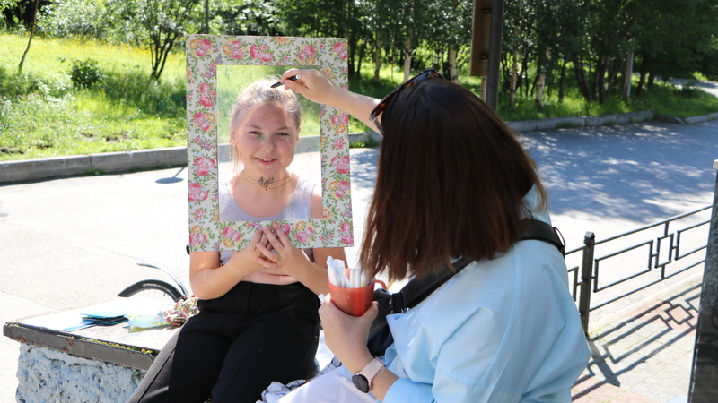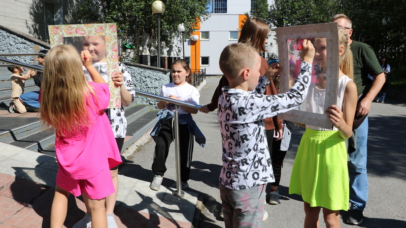Солнечным воскресным деньком на площадке у библиотеки мамы и папы, бабушки и дедушки, мальчишки и девчонки, а также сотрудники отдела электронных ресурсов с помощью ярких фломастеров и веселых портретных рамок создавали новые образы всем желающим.