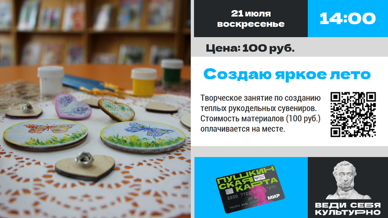 Количество мест ограничено. Материалы для работы оплачиваются отдельно. Стоимость материалов – 100 рублей. Оплатить можно в библиотеке любым удобным способом.
