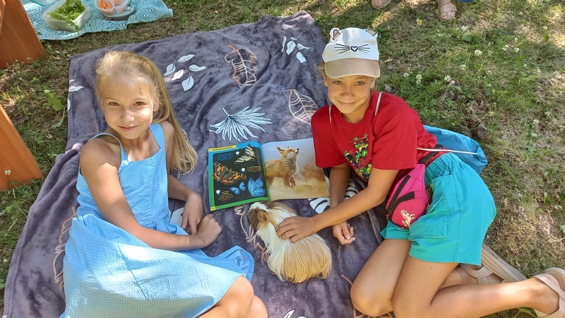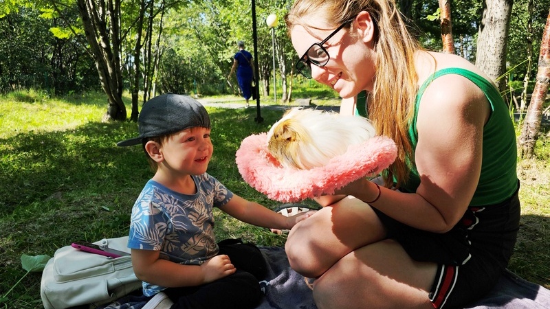 Буся и Чебурашка весело бегали по лужайке, пели самые необычные песенки, уютно лежали на коленках и позировали для ярких фотографий. На второй день к ним пришла в гости третья свинка Сима, покорив всех своим добрым нравом и прекрасным аппетитом!