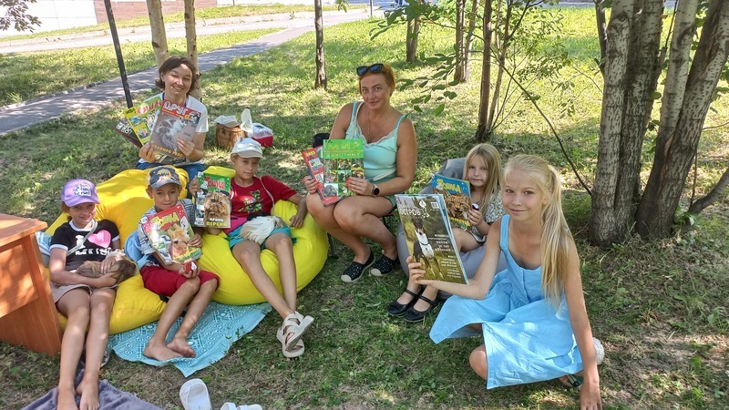 Мальчишки и девчонки с большим удовольствием знакомились с обаятельными домашними питомцами, рисовали их портреты мелками и фломастерами и, конечно же, читали интересные журналы о животных.