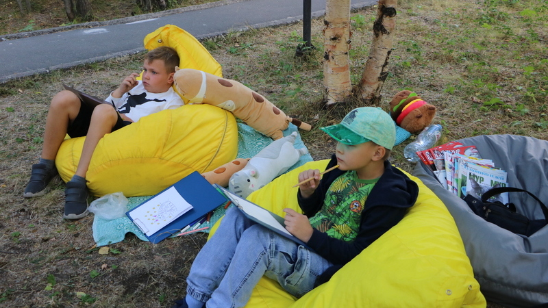 Сегодняшний теплый летний денек читатели провели на полянке возле библиотеки в обществе очень важного любителя искусства – кота Пушка