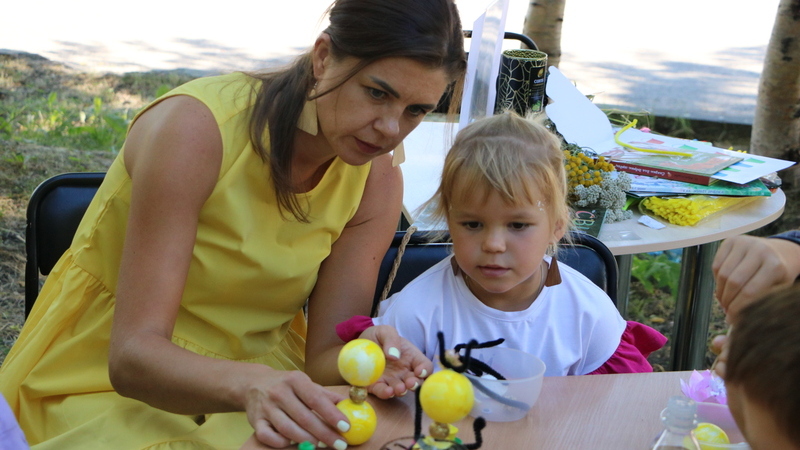 Участники познакомились с трудолюбивой и доброй пчелкой Жужей из сказки Натальи Абрамцевой. Вдохновленные веселой историей ребята взялись за ножницы и клей. Из пенопластиковых шариков и зубочисток каждый смастерил для себя маленькую труженицу. Из синельной проволоки сделали усики и юбочку, а из прозрачного пластика крылышки. Нарисовали полоски и украсили цветами.