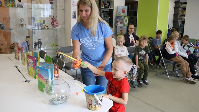 Где же оно может прятаться? Конечно же, в книгах! Первым испытанием стала литературная викторина-рыбалка «Лето в книжках». Дети с удовольствием отвечали на выловленные вопросы, используя в качестве подсказок книжную выставку.