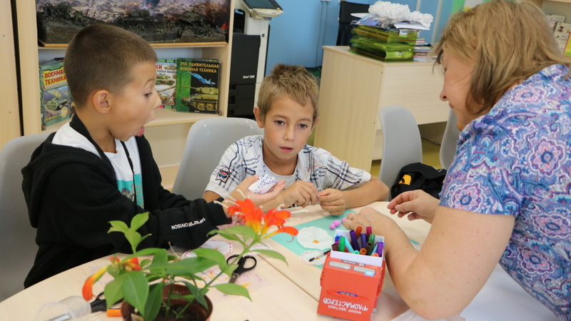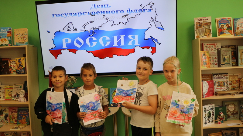 В этот день огромная страна расцветает бело-сине-красными красками – цветами России, словно сразу на всех полях и лугах распустились волшебные цветы как симолы мира и чистоты, веры и постоянства, нескончаемой энергии, силы и крови, пролитой за Родину. Стараниями юных россиян распустились и у нас в мастерской яркие цветы на бело-сине-красных лужайках. А помогли ребятам в этом бумага, фломастеры, капельки воды, русский дух и огромная любовь к Родине!