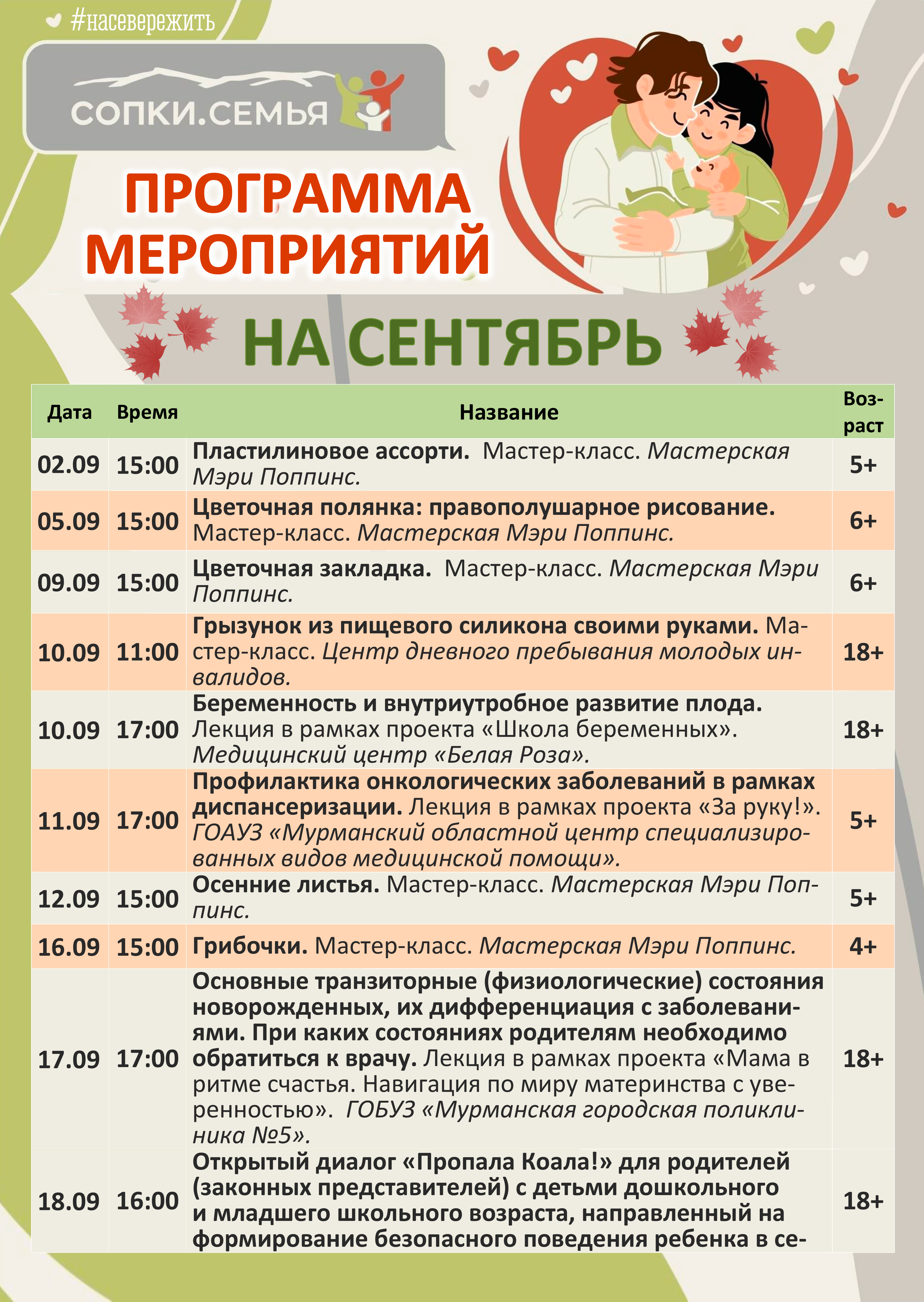 Специалисты подготовили для юных северян и их родителей содержательную программу. Посетителей уникального пространства ждут как полюбившиеся ранее проекты и творческие занятия, так и новые. В мастерской Мэри Поппинс помогут проявить ребятам творческий потенциал, познакомив с разными техниками декоративно-прикладного творчества, а лекции в рамках проекта «Школа беременных» станут хорошим подспорьем для будущих родителей.